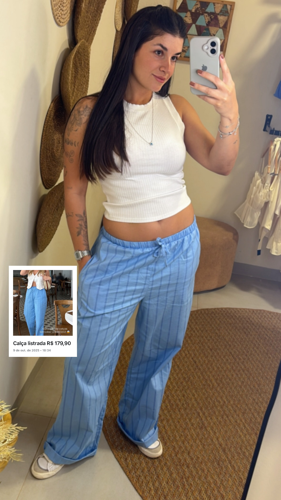 Calça Listrada em Algodão – Estilo e Conforto 🤍